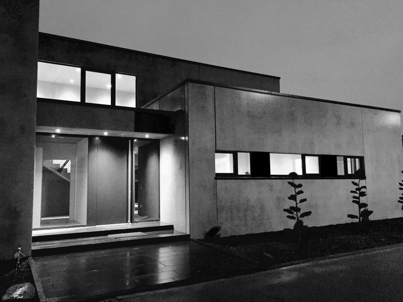 Einfamilienhaus mit Thermowandelementen in Sichtbeton innen wie aussen. Wohnraum 2-geschossig mit Empore, 2 Dachterrassen, Luft-Wasser-Wärmepumpe (heizen und kühlen), kontrollierte Be-und Entlüftungsanlage mit Wämerückgewinnung.